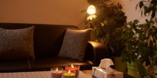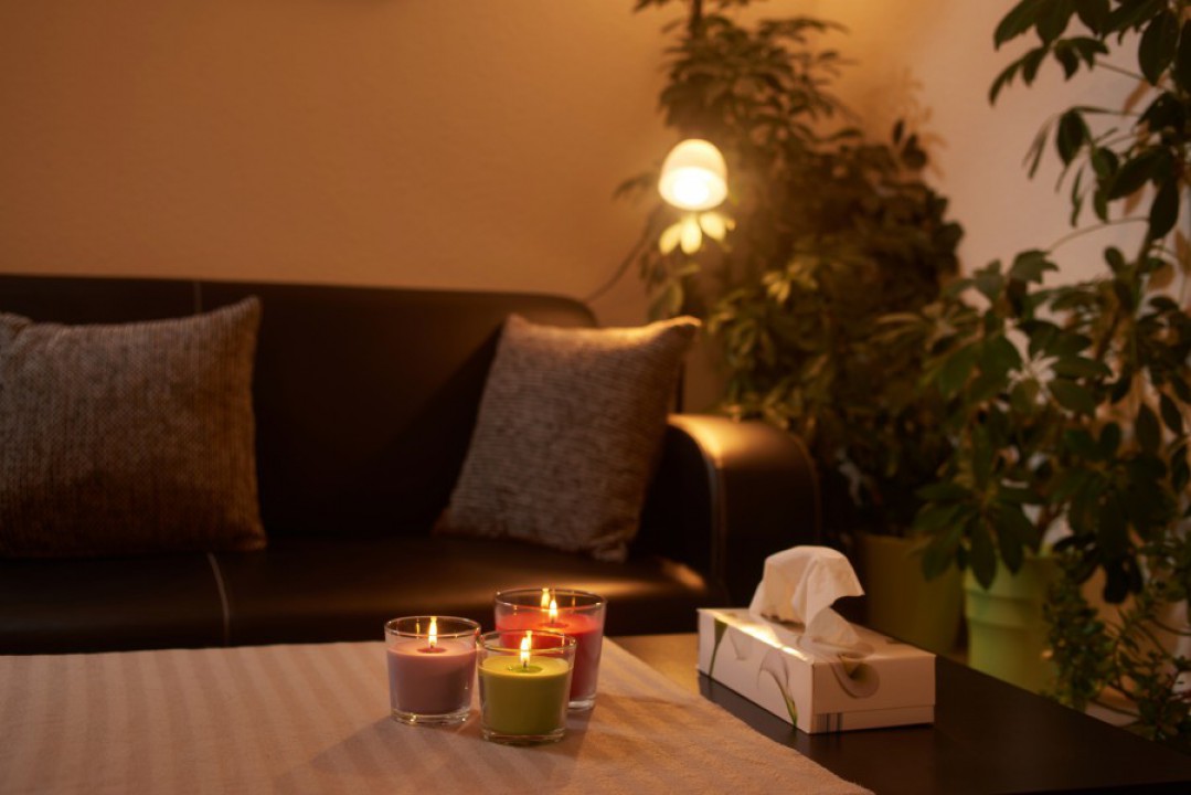 Der Abschiedsraum soll eine ruhige Wohnzimmeratmosphäre vermitteln. Es ist nicht mit Behandlungstisch und medizinischen Geräten eingerichtet, sondern mit einem Sofa und Teppichen.